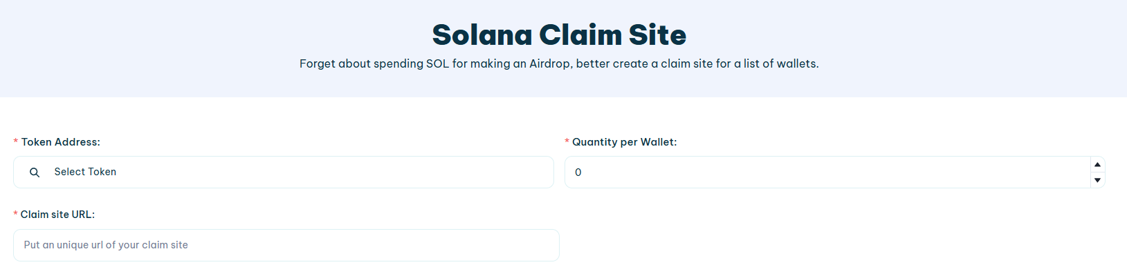 3. **Quantity per Wallet**: Here you define the number of tokens that each wallet will be able to claim.